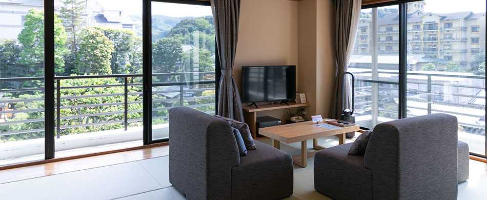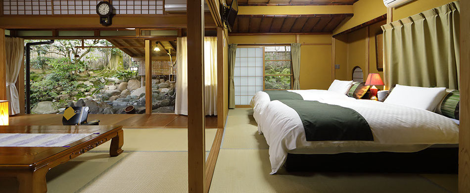 純和風のしつらえで、窓からは一部屋ごとに異なる景色をお楽しみいただけます。
