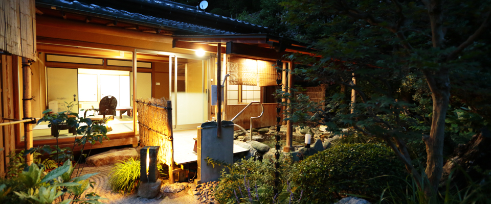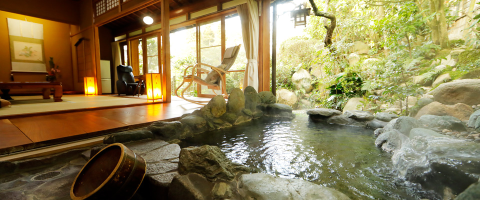 源泉かけ流しの専用露天風呂と、手入れの行き届いた空間で特別な時間をお過ごしください。