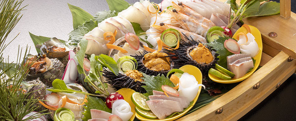 山陰の名産、宍道湖で取れる食材の七種を総称した「七珍」と呼ばれる宍道湖の幸など、出雲ならではの季節の食材に心を込めて調理いたしております。